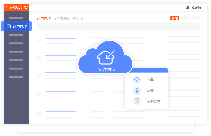 • 订单管理 下单,审核,发货状态实时同步,避免漏单,错单