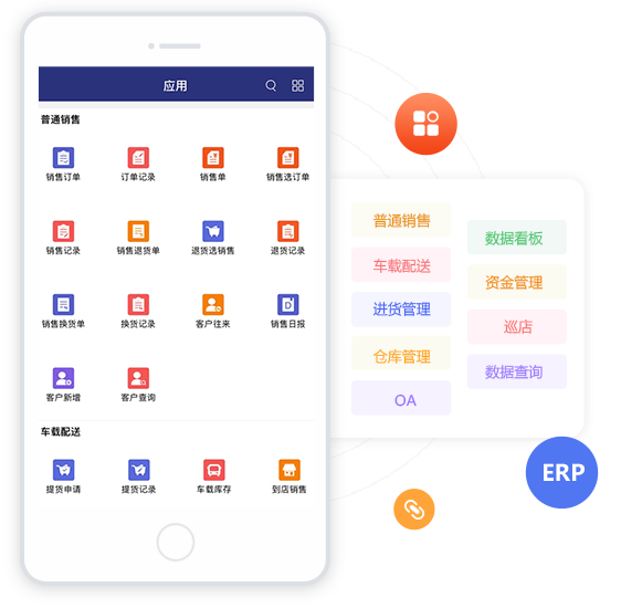 覆盖ERP大多数功能,可自主添加到首页常用模块