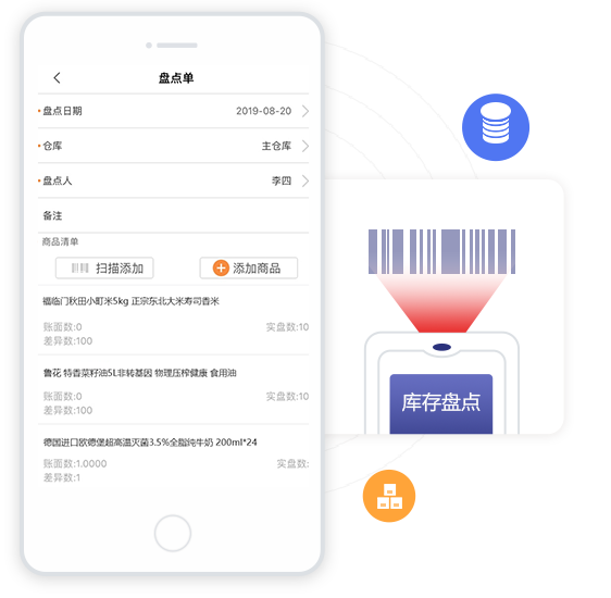 快速扫码进行库存盘点,精准库存管理,损溢数据一目了然